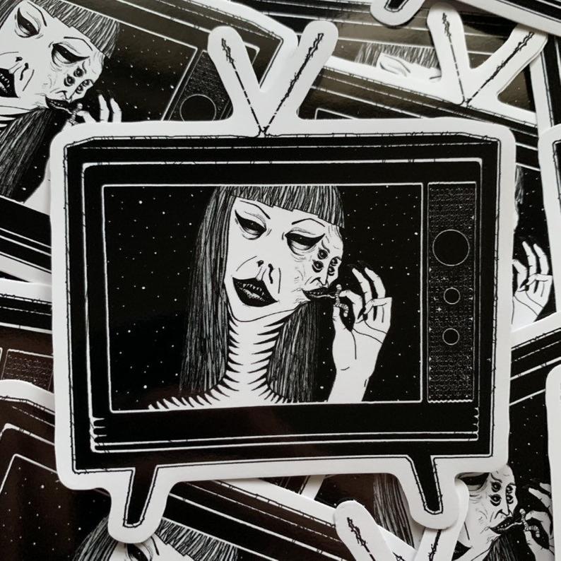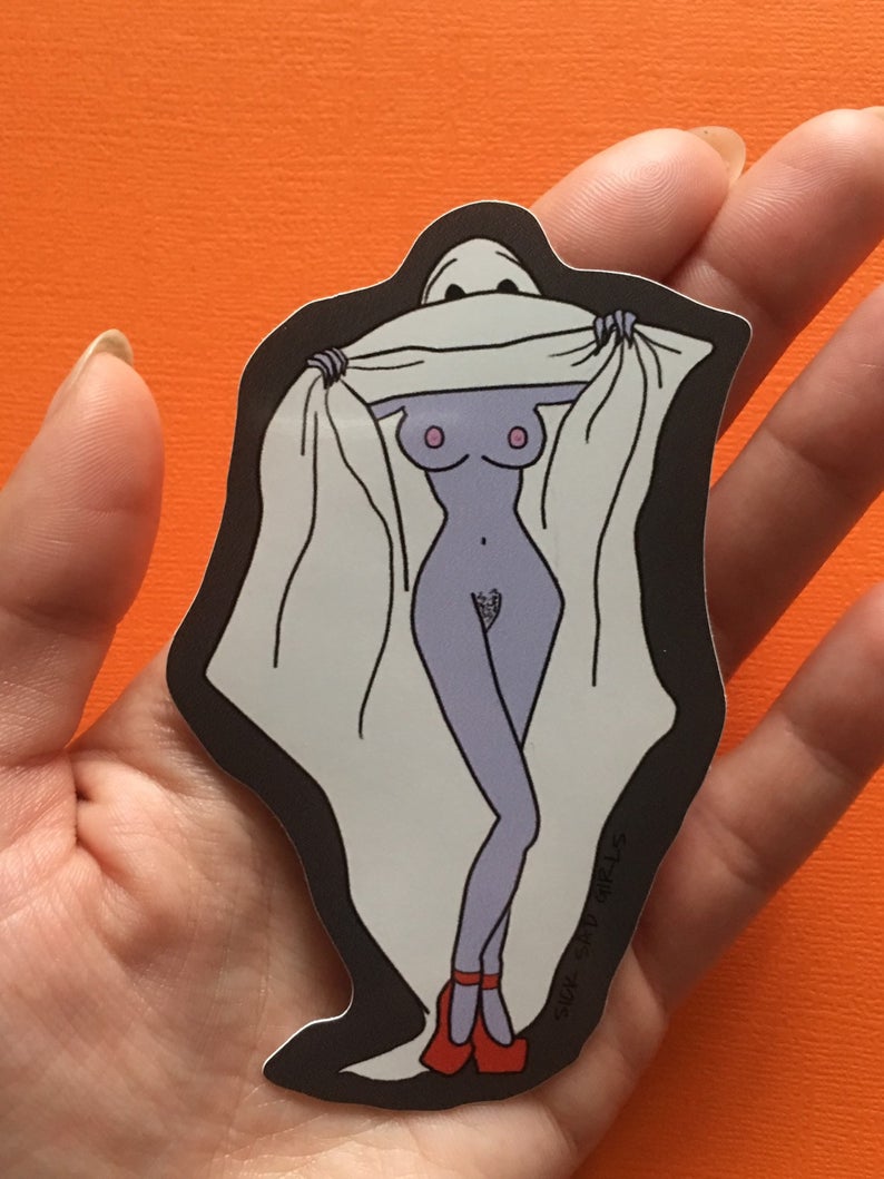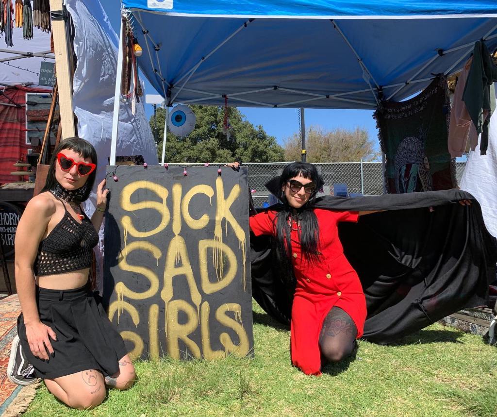 Sick Sad Girls started out as a monthly arts and crafts day for female identifiers to explore their creativity in a safe space. It later evolved into a small business shared by best friends Charlie Quintero and Camille Smooch. They create artwork that speaks true to themselves and their fellow misfits. Both have a background in traditional art and special makeup effects. They don’t feel married to any medium and constantly love to switch it up: drawing, painting, embroidering, tattooing, eye-making, you name it! Switching between mediums keeps them alert, inspired, and feeling as though they are truly capable of making anything their hearts desire!