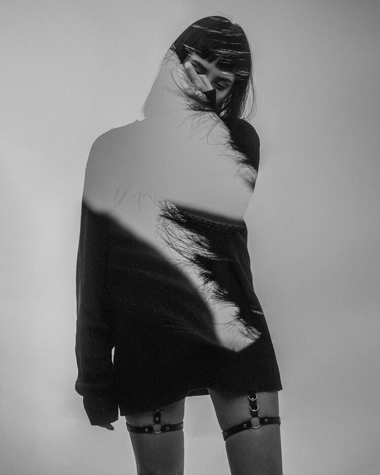 I’ve always had a thing for black and white imagery, like black and white band pics or black and white films. My favourite color is black, my overall mood and aesthetic is usually quite nostalgic and melancholic, so black and white is always my favourite way to go.